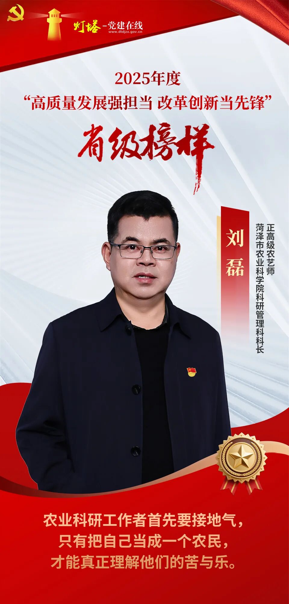 刘磊是农业科研领域的杰出代表。作为省科技特派员、省蔬菜产业技术体系菏泽综合试验站站长,他坚持深入一线、扎根田间,充分发挥团队技术优势,不断深耕蔬菜育种和栽培技术研究,成功培育“菏粉”系列番茄品种,示范推广先进实用技术,解决了蔬菜种植连作障碍、环境污染等问题,在全市应用面积近20万亩,帮助农民增收近4亿元。多年来,他坚守“科技兴农、服务三农”理念,坚持举办培训班、技术讲座、现场技术交流会等,主持完成多项科研项目,培训基层技术人员和科技带头户600余人,建立示范基地3000余亩,指导农户谋划高效种植模式,扩宽发展门路,为提升蔬菜产量与品质、促进农民增收作出了巨大贡献。先后被评为山东省“乡村振兴专家服务团”专家、省农科院“三个突破”先进个人、菏泽市优秀共产党员。